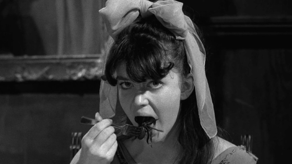 The Merrye children of Spider Baby or, the Maddest Story Ever Told don’t seem like they would have much to be merry about. The unfortunate brood suffers from a rare neurological disorder particular to their bloodline. As a voiceover narrator helpfully explain in the opening, at around the age of 10 or so, Merrye family members regress to a “pre-human condition of savagery and cannibalism.”