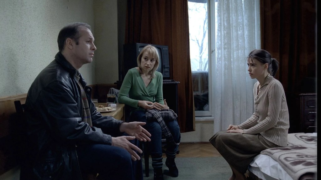 We begin in a drab college dorm room, with roommates Otilia (Anamaria Marinca) and Gabriela (Laura Vasiliu) getting ready for an excursion. Eventually it becomes clear that Otilia is the take-charge person of the two, as she makes the rounds to black marketeers and visits her boyfriend, Adi (Alexandru Potocean), to tell him that a mysterious errand will delay her arrival to his parents’ house for dinner.