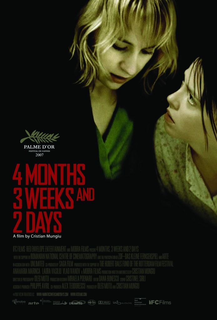 4 Months, 3 Weeks and 2 Days is a starkly told tale of abortion and rape in the waning years of Romania under the oppressive Ceauşescu regime. Winner of the Palme d’Or at the 2007 Cannes Film Festival, it is all the more brutally effective because it is so quotidian, chronicling a day in the life of two young women caught up in miserable circumstances.