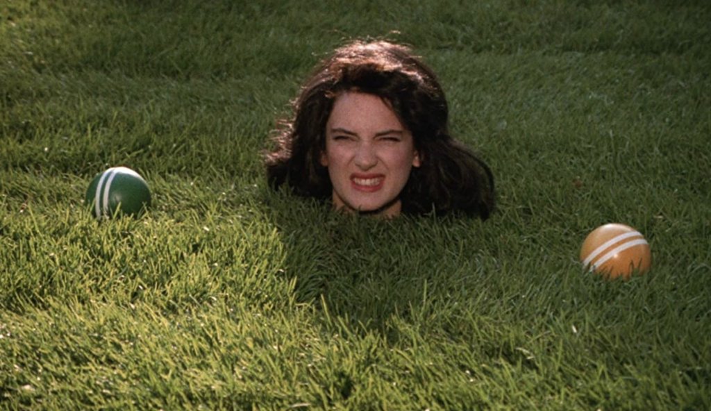 Some critics razzed Slater for what sure looks to be a Jack Nicholson impersonation, but the shtick suits the character. J.D. does fancy himself a dangerous rebel ready to topple sacred cows; why wouldn’t he be a Jack wannabe? But Winona Ryder, volatile as a Molotov cocktail here, owns Heathers in a career-making performance. She celebrated her 16th birthday during the filming.