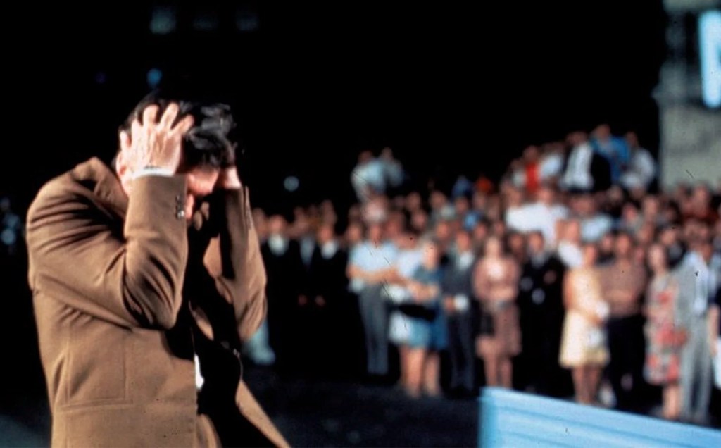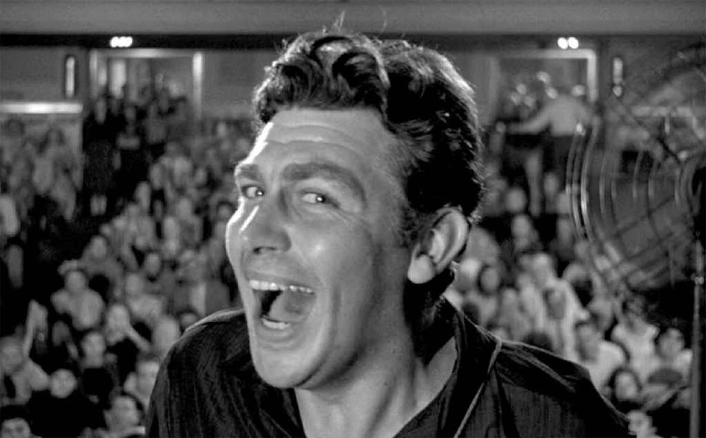 In this age of populist podcasters, on-the-take influencers and prevaricating demagogues, Elia Kazan’s masterpiece is so prescient as to be spooky. In the 1950s, A Face in the Crowd screenwriter Budd Schulberg had plenty of false prophets of the airwaves to draw inspiration––from Father Coughlin to Walter Winchell (who makes a cameo here)––but he and Kazan went further in foretelling the soul-crushing power of mass media for charlatans willing to exploit it. If you know Andy Griffith only from his aw-shucks television persona, buckle up. He is a tornado of volatility and manic charisma as “Lonesome” Rhodes, a drunken drifter who becomes a local celebrity after he is “discovered” in an Arkansas jail by a small-town radio reporter (Patricia Neal). A man whose ambition is matched only by his viciousness, Lonesome weaponizes a down-home huckster charm that catapults him from radio personality to TV star to would-be political kingmaker. “I’m not just an entertainer. I’m an influence, a wielder of opinion… a force!” Lonesome boasts after a stodgy U.S. senator begs his support for a presidential bid. “This whole country’s just like my flock of sheep––rednecks, crackers, hillbillies, hausfraus, shut-ins, pea pickers!” Along with Ace in the Hole (1951) and Sweet Smell of Success (1957), A Face in the Crowd forms an Eisenhower-era triptych that peels the skin of American can-do spirit to expose a pit of unbridled greed.