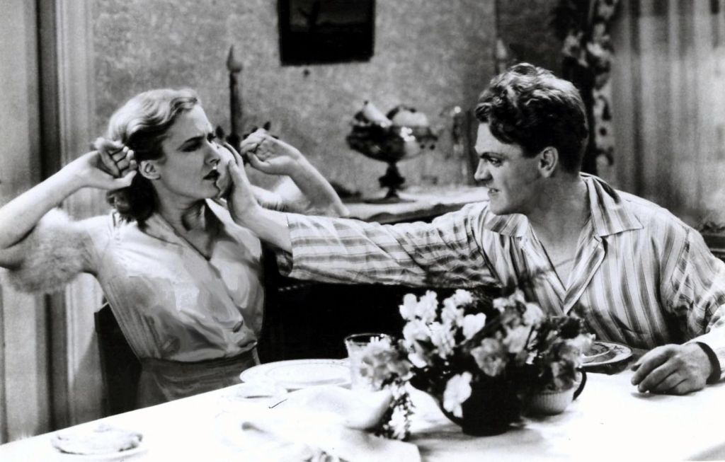 The Public Enemy codified the Warner Bros. gangster flick and catapulted James Cagney to superstardom. Producer Daryl F. Zanuck, who came up with the story idea, told director William Wellman he wanted no sentimentality and no character to have even a whiff of morality. Sure enough, The Public Enemy racked up complaints from organizations such as the Daughters of the American Revolution, the Veterans of Foreign Wars and the National Federation of Men’s Bible Classes. While the film’s violence, shocking in 1931, may feel dated to modern audiences, a notable exception is when Cagney, as mobster Tom Powers, smashes a grapefruit in the face of his girlfriend (Mae Clarke). The actress rued years later that the action overshadowed her entire career. Cagney is electrifying. He actually had been cast as Tom’s best friend, with Edward Woods to play the lead. But it quickly became clear that Cagney’s magnetism could not be contained, and Wellman switched the roles.